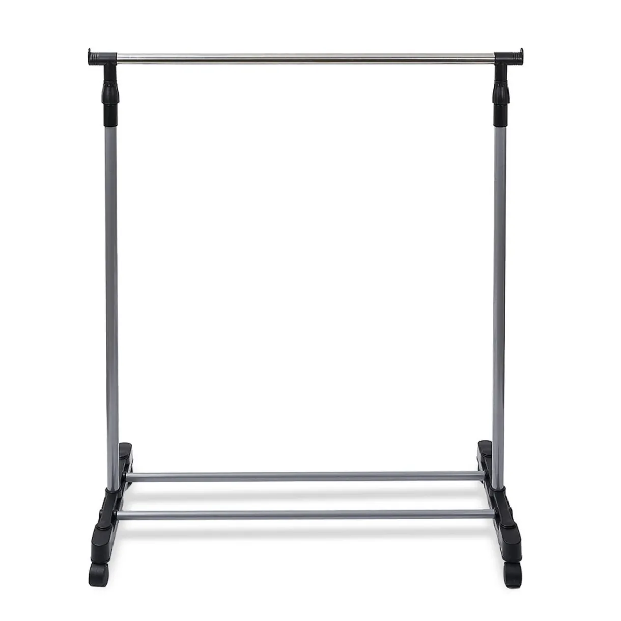 Facile à déplacer grâce à ses 4 roulettes, ce portant est réglable en hauteur de 97 à 160 cm vous permettant de l’ajuster selon vos besoins.