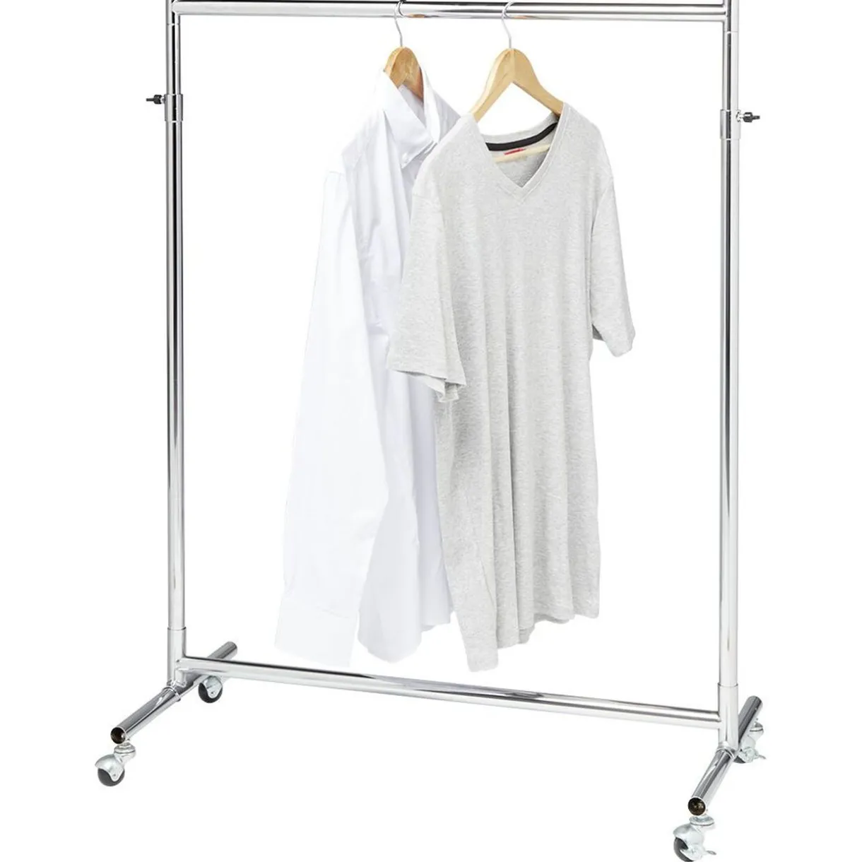 Portant à vêtements extensible d’une hauteur de 117,5 à 172 cm. Muni de 4 roulettes, il sera facile à déplacer même avec des vêtements suspendus.