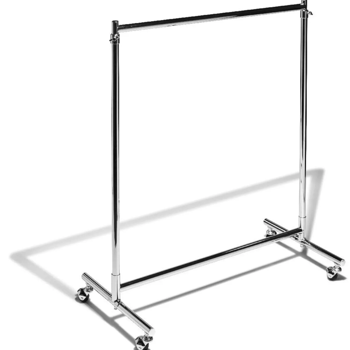 Portant vêtements à roulettes gris extensible en hauteur jusqu’à 172 cm.
