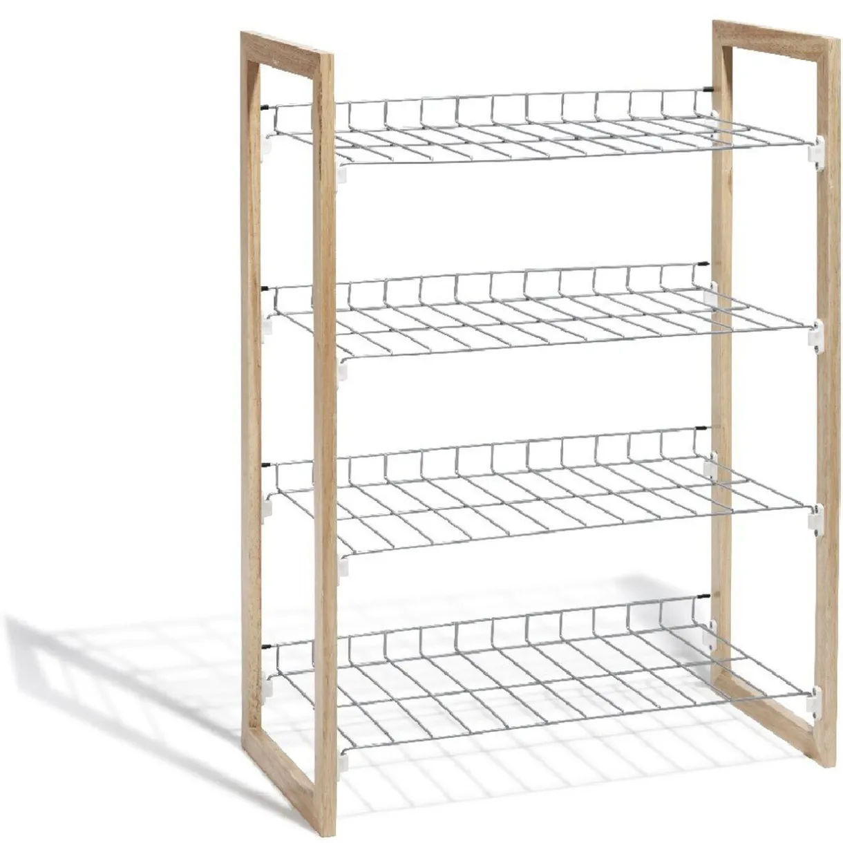 Range chaussures à 4 niveaux de couleur gris et naturel.
