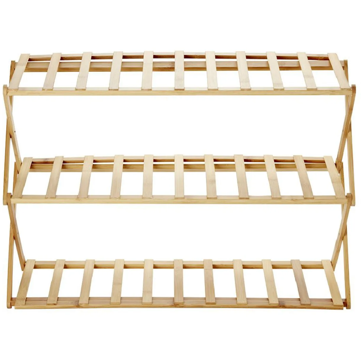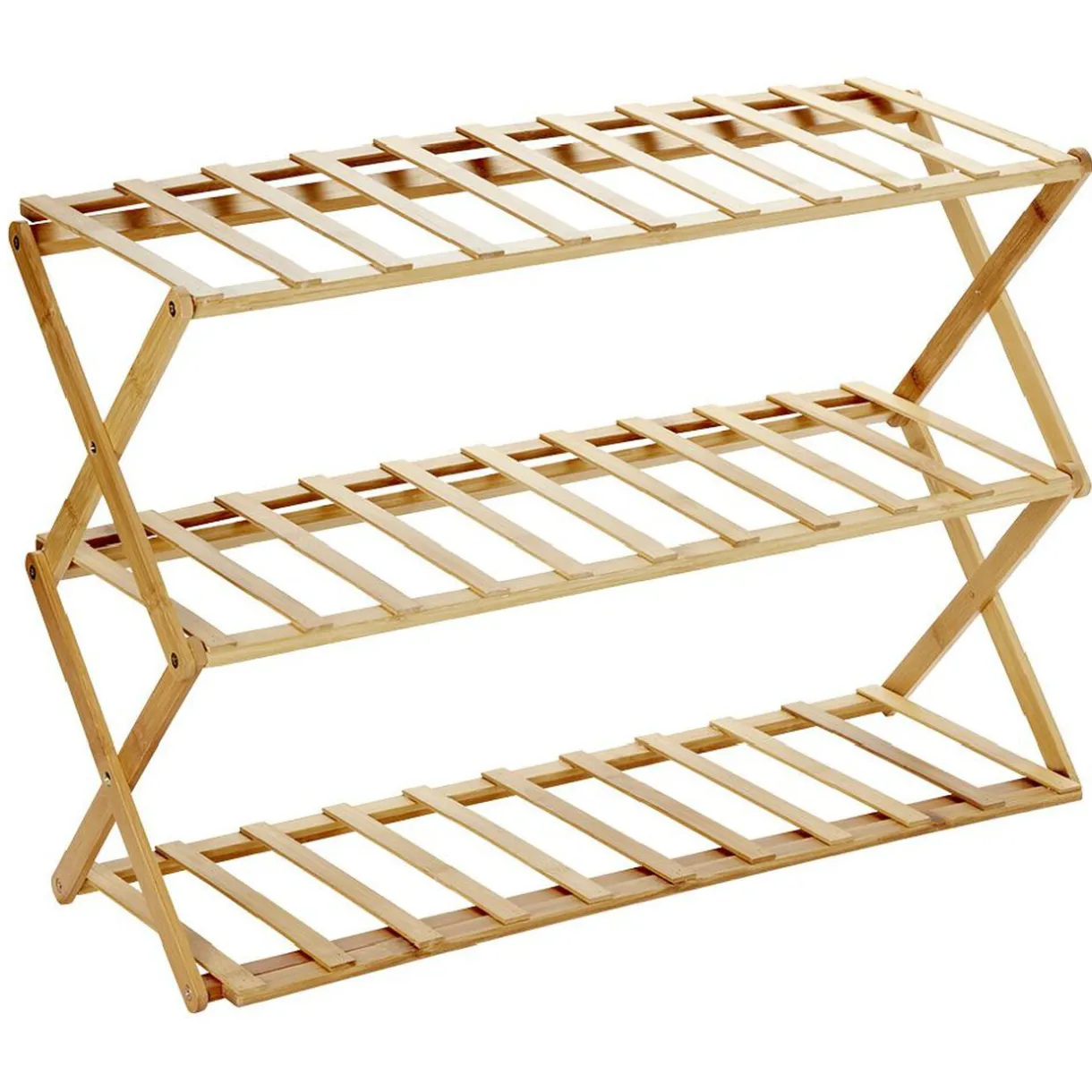 Range-chaussures repliable en bambou naturel, idéal pour organiser votre rangement tout en apportant une touche déco.