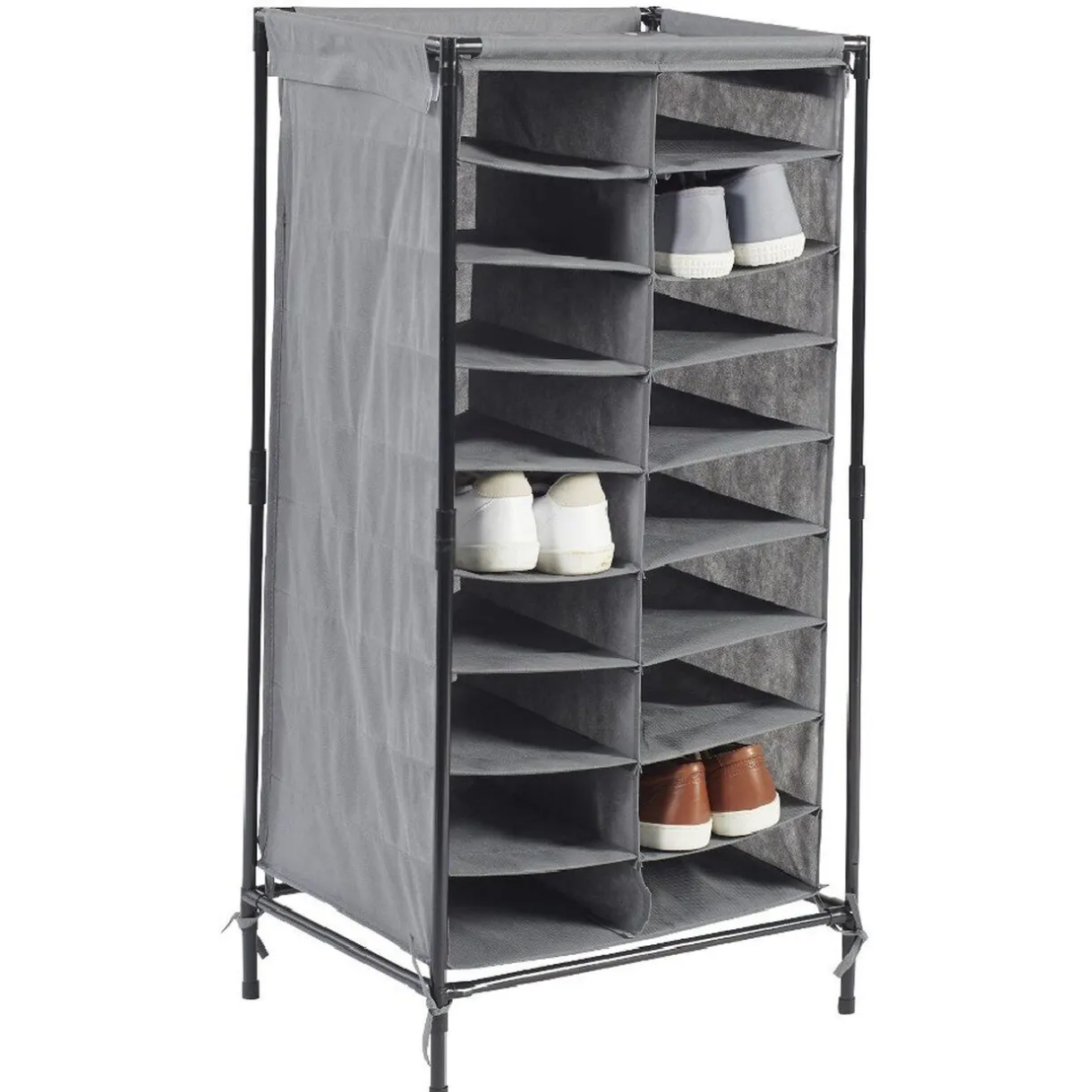 Ce range-chaussures gris avec une capacité de 18 paires sera idéal pour mieux organiser votre entrée par exemple.