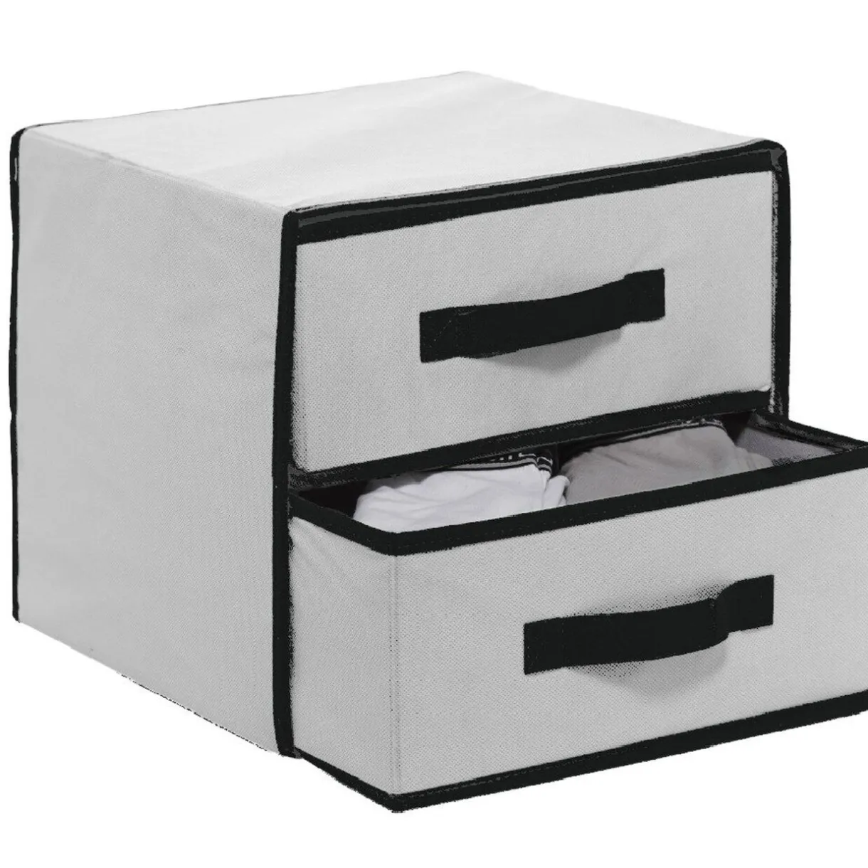 Rangement gris pour dressing composé de 2 tiroirs en carton et polypropylène.