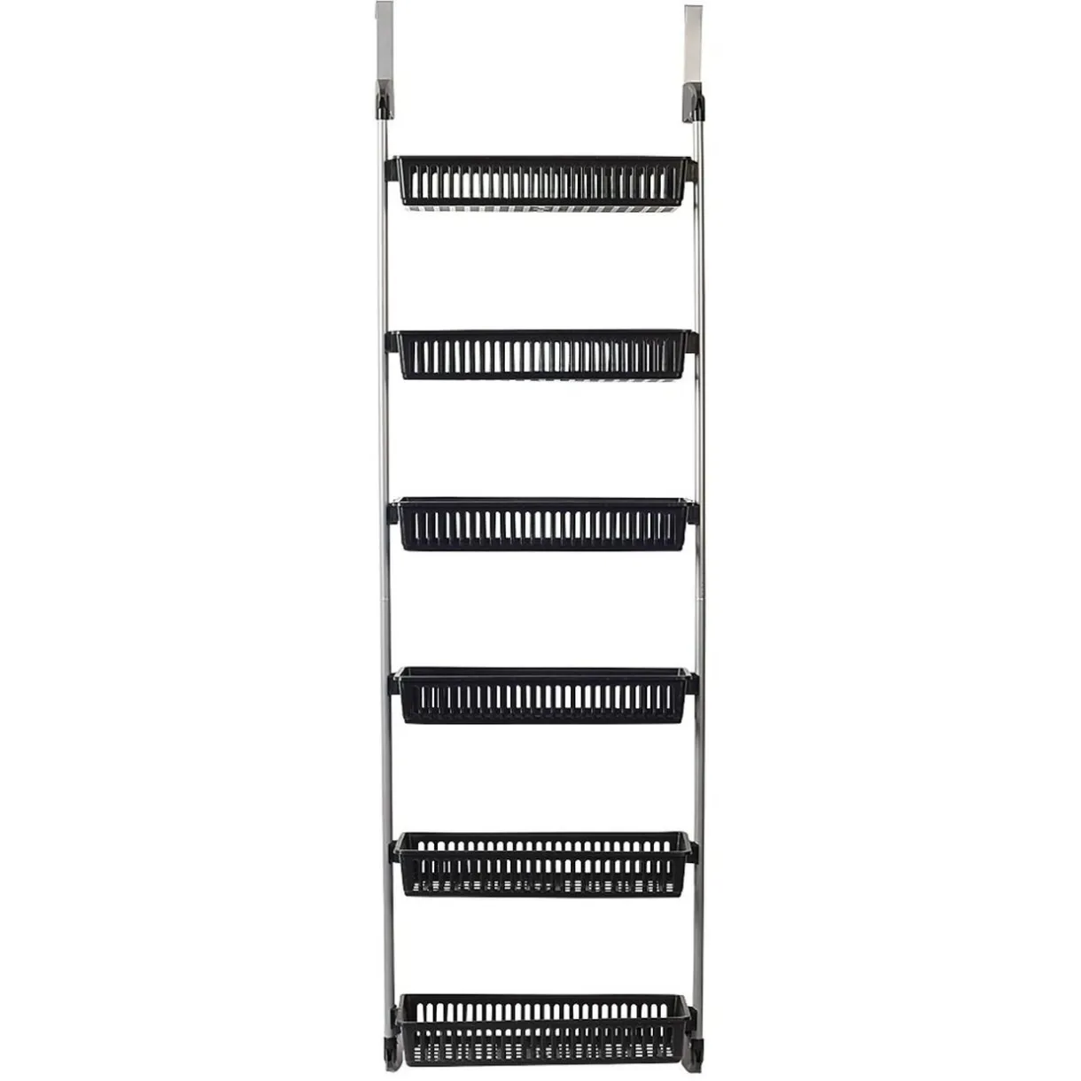 Rangement à suspendre en métal avec 6 niveaux en plastique.