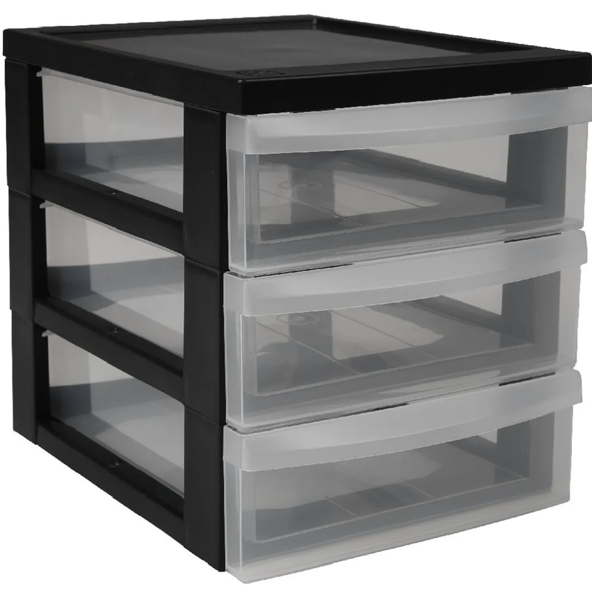 Organisez votre bureau grâce cette tour de rangement noire avec 3 tiroirs transparents. Idéale pour y ranger vos fournitures au format A5.