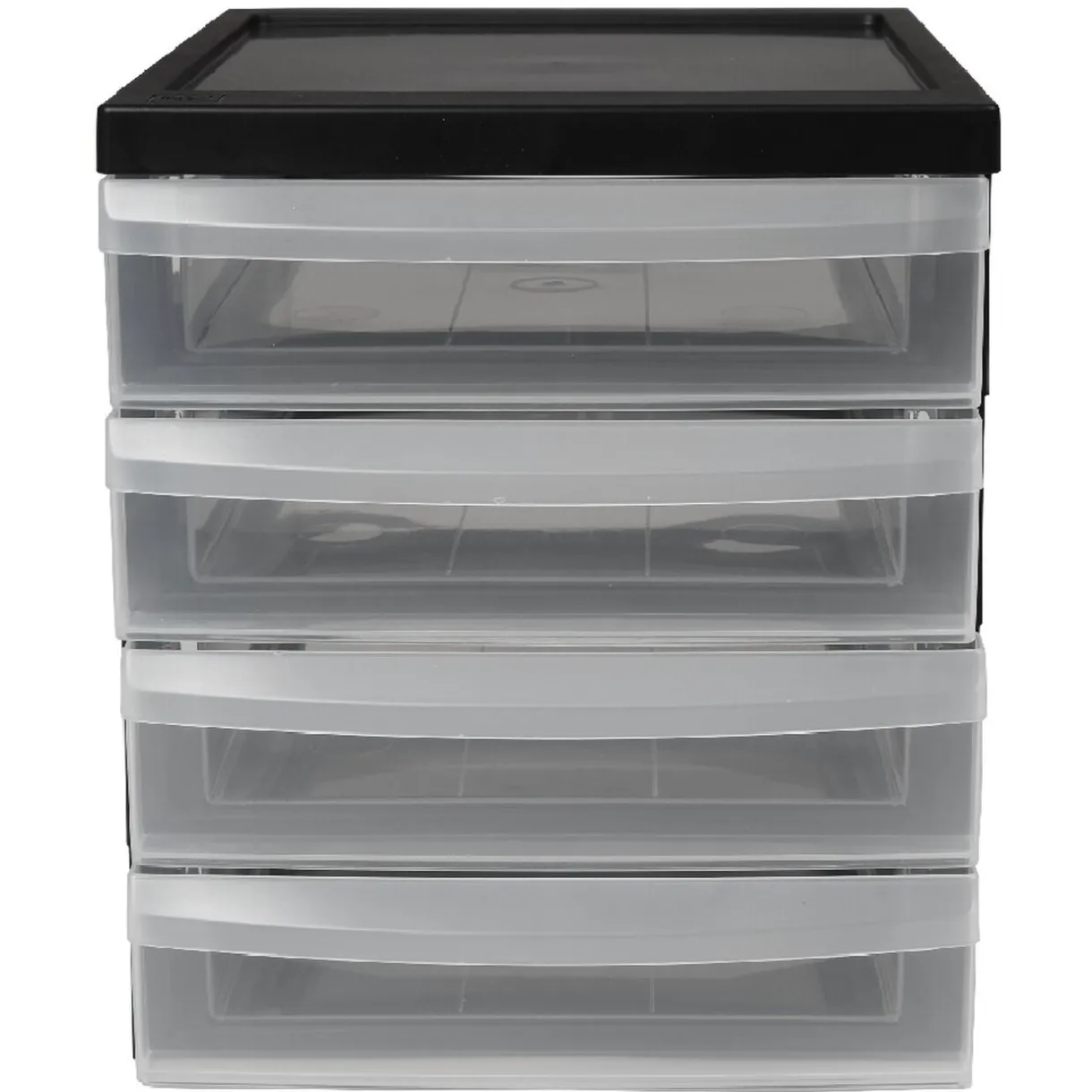 Organisez vos feuilles et cahiers grâce à cette tour de rangement noire avec 4 tiroirs transparents. Idéale pour y ranger vos fournitures A5.