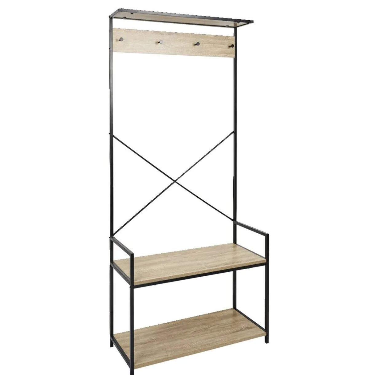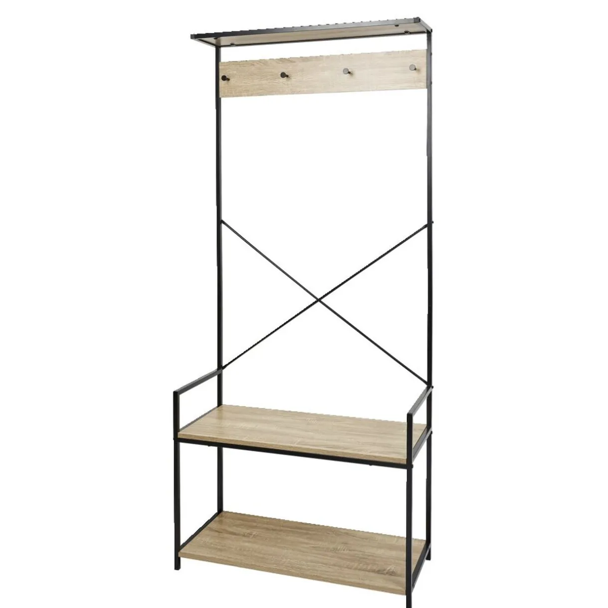 Doté de 4 crochets, vous pourrez y suspendre vos manteaux, vestes et sacs à bandoulière, complété par 2 niveaux inférieures pour vos chaussures et sacs à main, ainsi que d’une étagère supérieure pour vos chapeaux et accessoires.