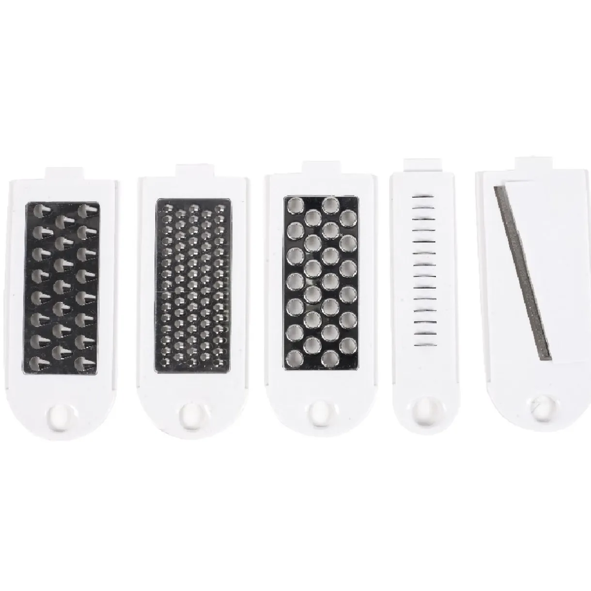 Râpe multifonction en plastique, dim. 31,5x11x4,5 cm. Comprend 1 râpe large, 1 râpe fine, 1 râpe, 1 trancheuse et 1 insert pour julienne.