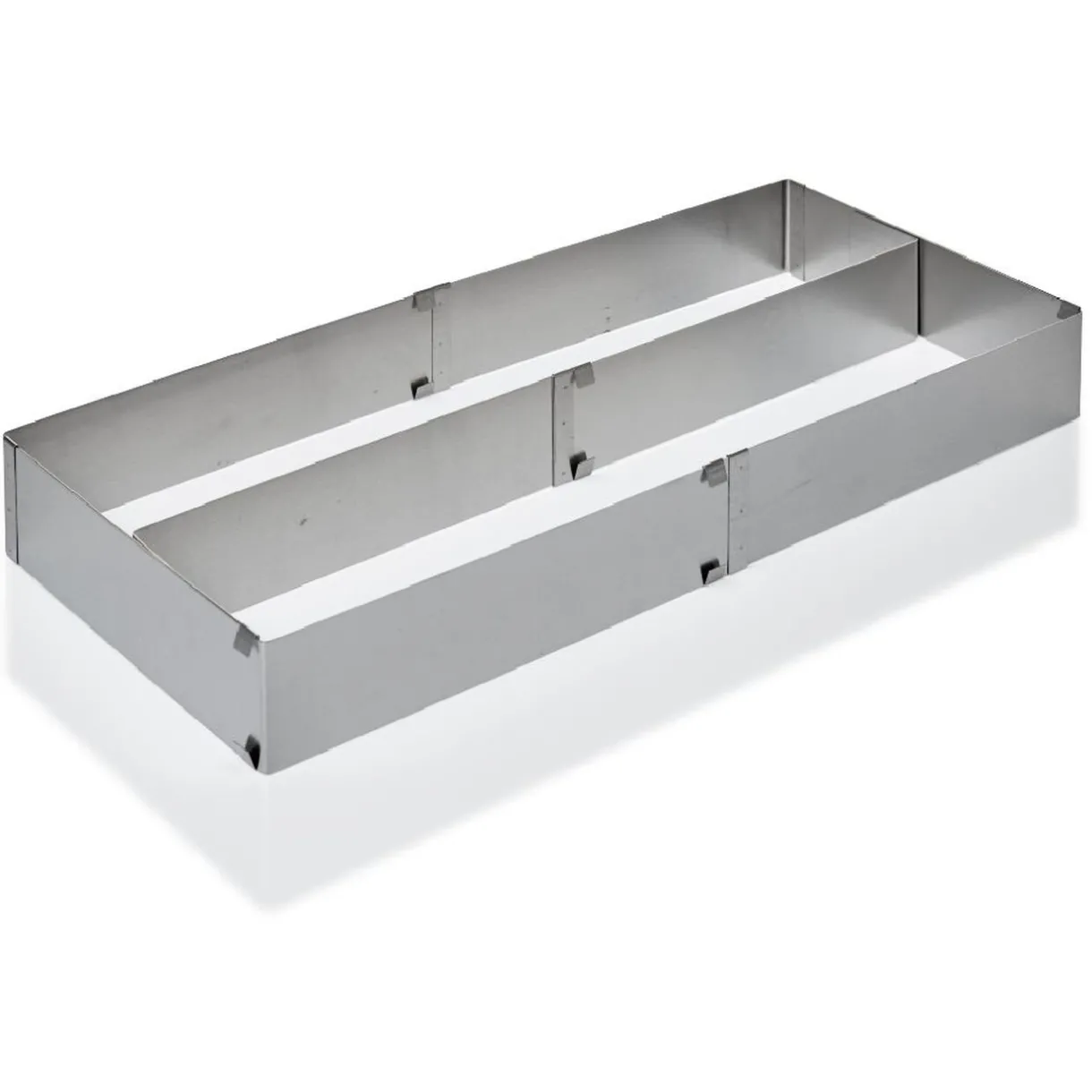 Pratique, réalisez des génoises et des gâteaux d’une forme parfaite grâce à ce rectangle de pâtisserie extensible avec axe centrale amovible.