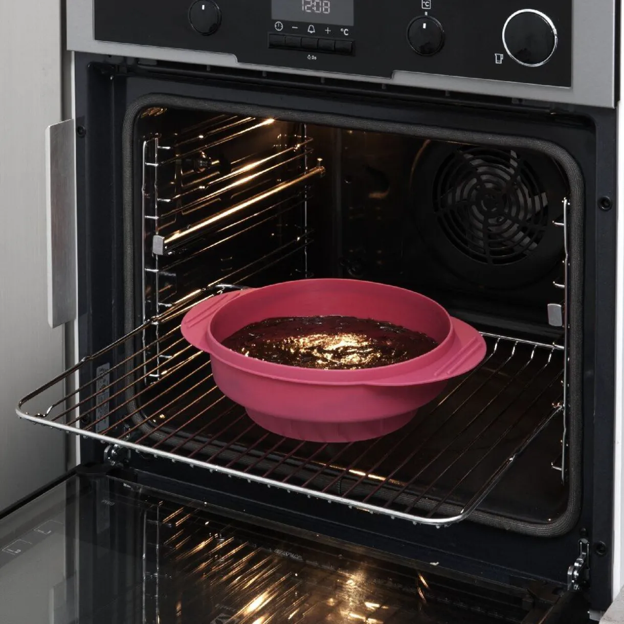 Mixez votre préparation et repliez le bol : il se transforme en moule prêt à enfourner.