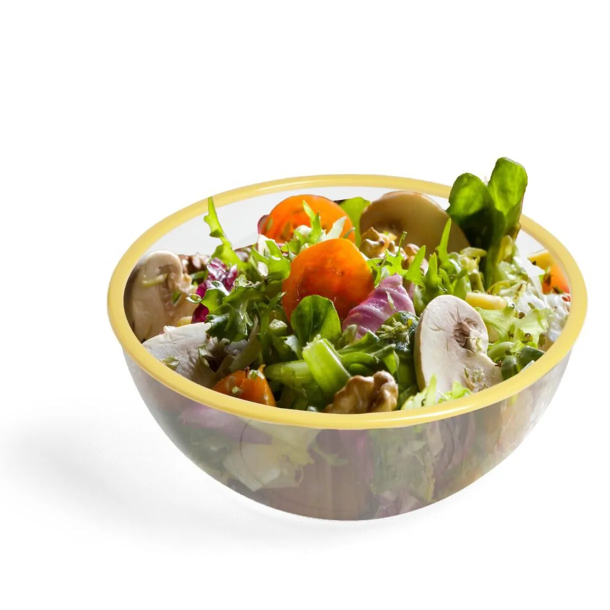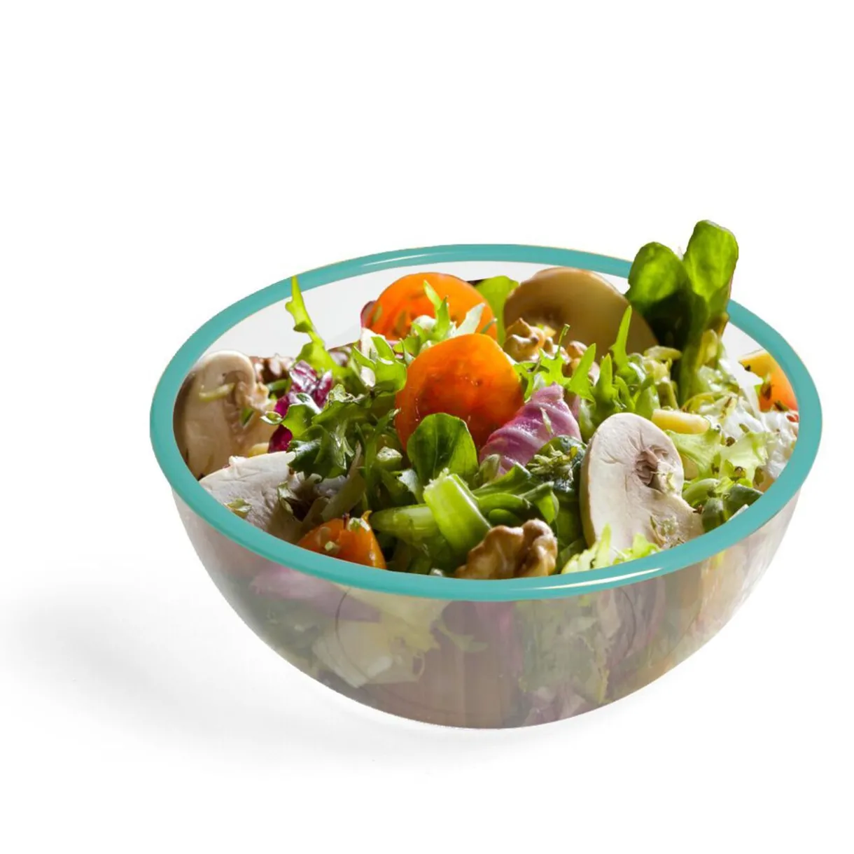 Ce saladier en plastique transparent, agrémenté d’une bordure colorée, offre une solution élégante et pratique pour servir vos plats préférés.