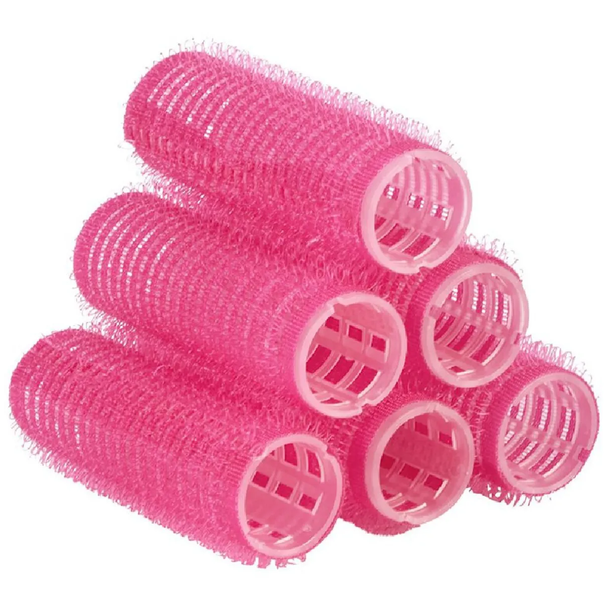 Lot de 6 bigoudis roses avec bandes autoadhésives