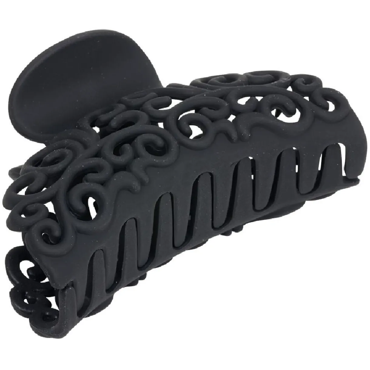 Pince à cheveux(L.9 cm) en plastique noir mat, idéal pour faire tenir ses cheveux avec élégance en un geste.