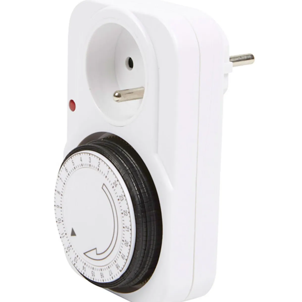 Programmateur journalier 24h d’intérieur, dim. 15×7 cm, plastique. Cette prise permet de programmer le démarrage et l’arrêt de l’appareil électrique branché afin qu’il ne fonctionne qu’à une période souhaitée..