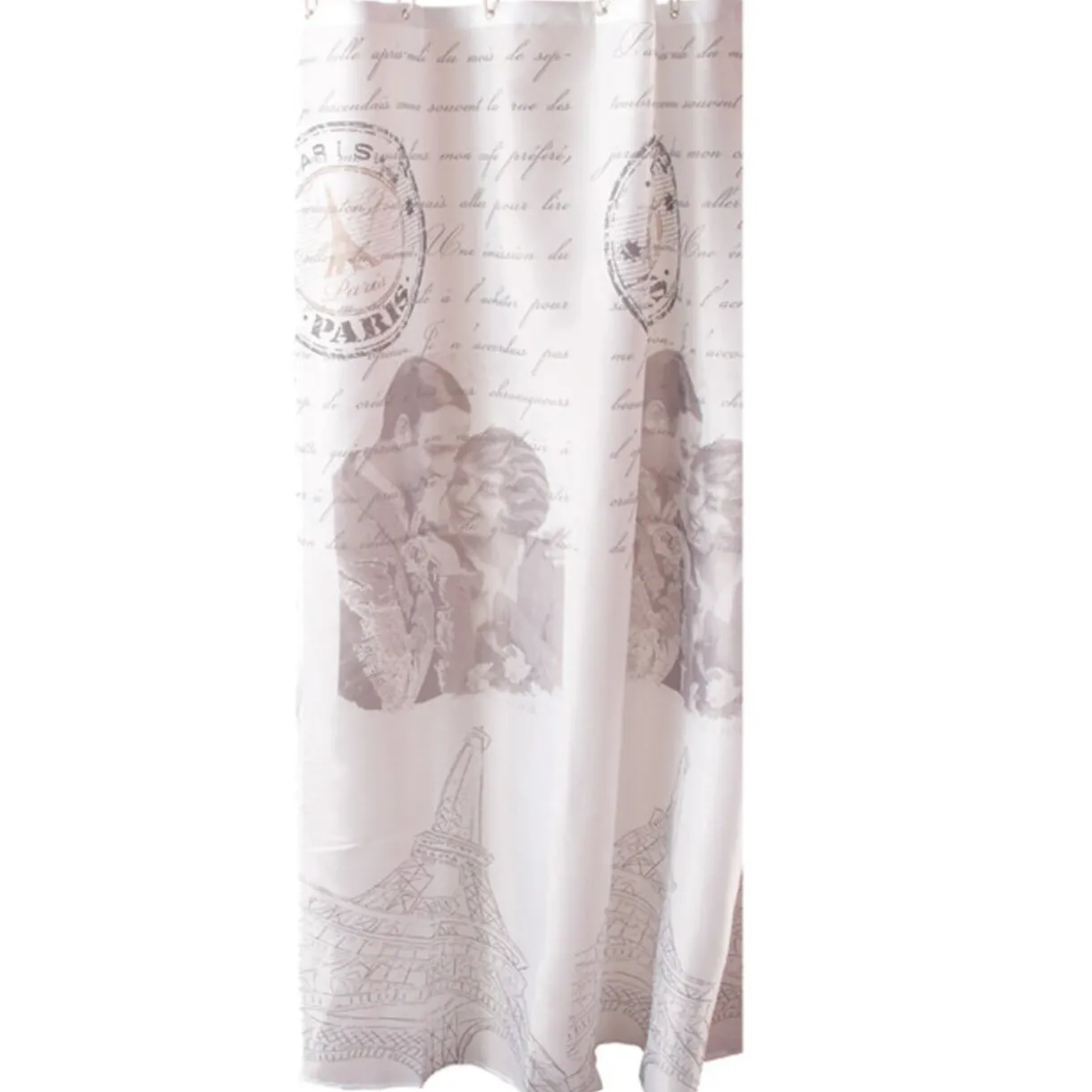 Rideau de douche « carte postale Paris », à anneaux, dim. 180×180 cm, polyester.