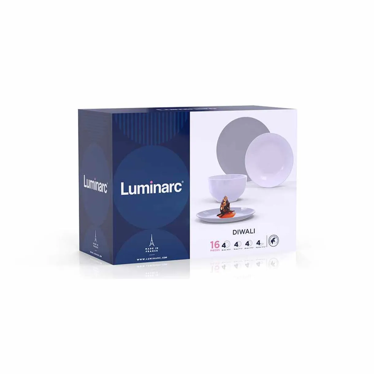 Gardez votre vaisselle assortie d’un plat à un autre avec ce service à vaisselle Diwali gris et blanc composé de 16 pièces :