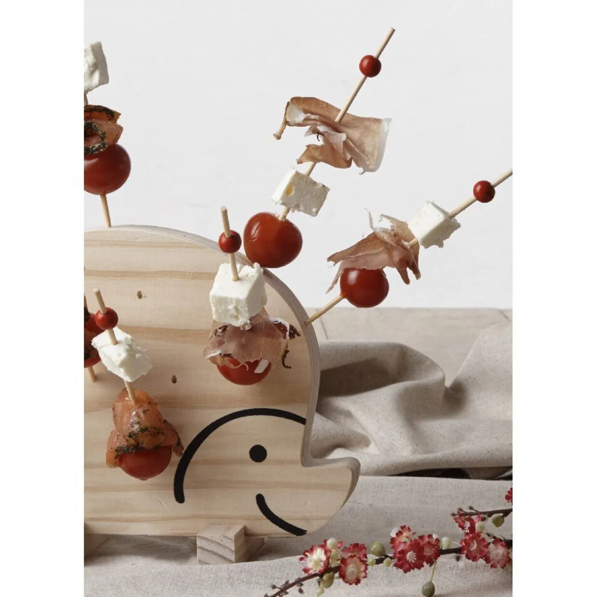 Set apéro en forme d’hérisson, dim. 22×17,5×8 cm, bambou. 27 pics inclus, L. 16 cm.