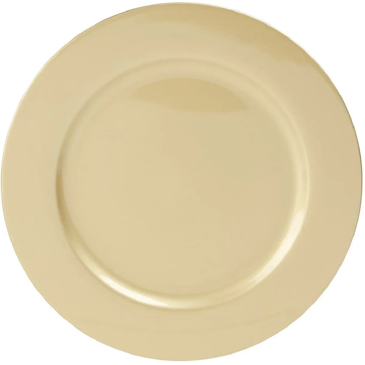 Sous-assiette décorative en plastique doré pour apporter une touche élégante et festive à votre table de réveillon.