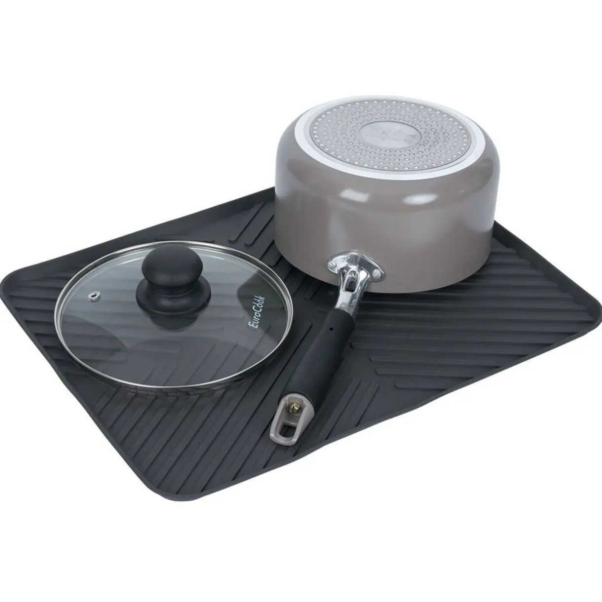 Pratique et discret, ce tapis égouttoir en plastique rainuré assurera un séchage rapide de votre vaisselle tout en protégeant votre plan de travail des traces d’eau.