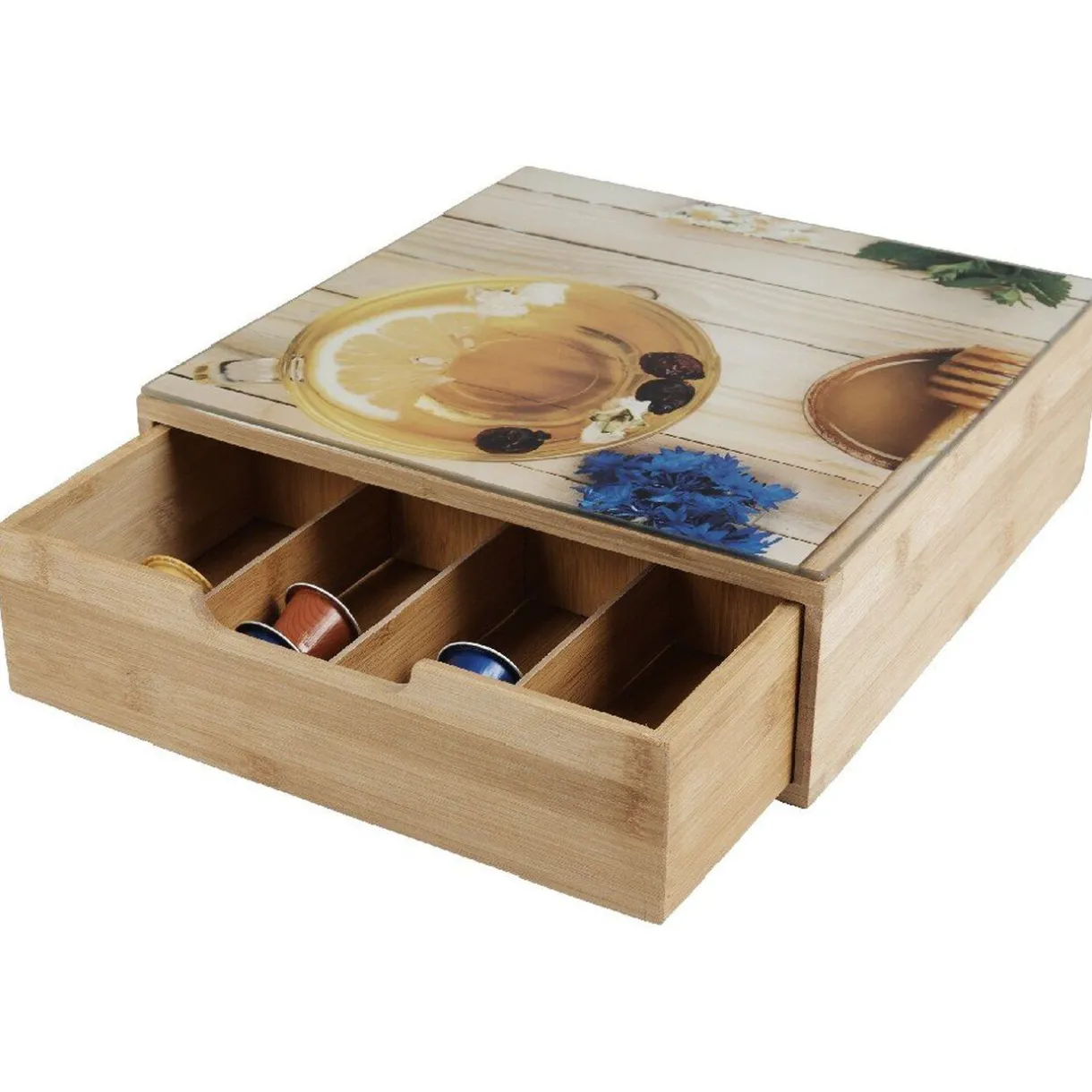 Tiroir pour dosettes motif thé au citron. Ce design s’intégrera facilement à votre décoration de cuisine.