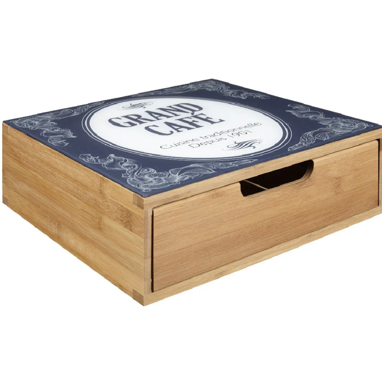 Tiroir à dosettes « grand café », dim. 30x30x10 cm, bambou.