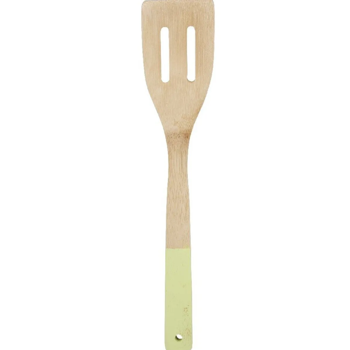 Léger et résistant, cet ensemble de 5 ustensiles de cuisine en bambou naturel avec manche coloré apportera une belle touche vitaminée dans votre cusine.