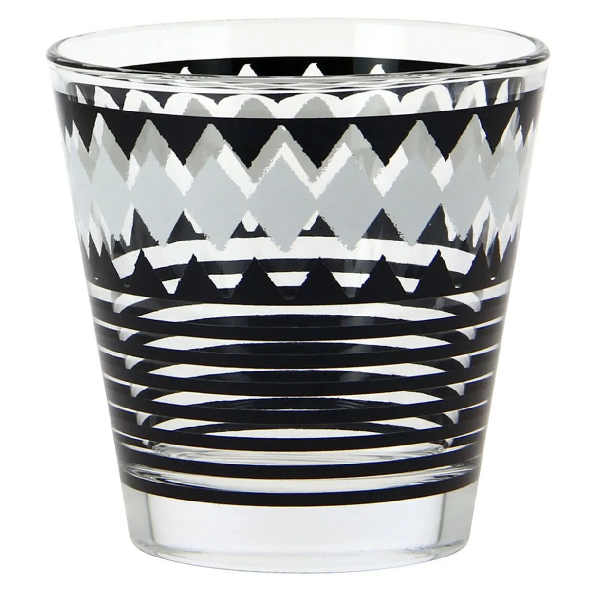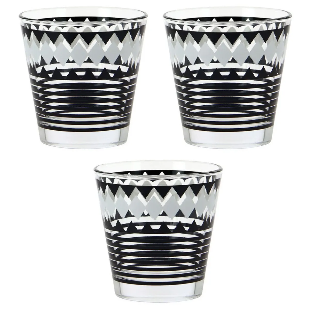 Lot de 3 verres bas en verre au motif graphique d’une contenance de 25 cl.
