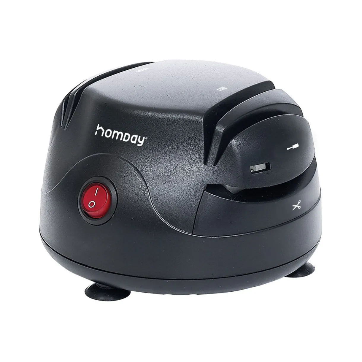 Muni d’un fil rétractable et d’un interrupteur mache/arrêt, vous pourrez le mettre rapidement en fonction. 3 ventouses se trouvent au-dessous vous permettant de positionner l’aiguiseur de façon stable sans qu’il ne bouge.