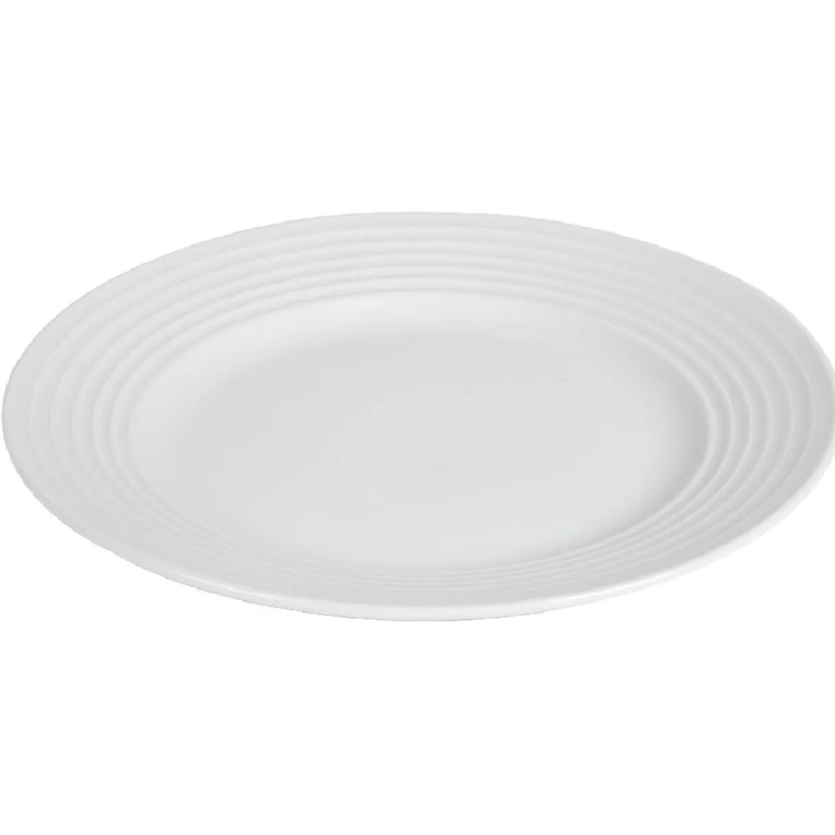 Une assiette à dessert qui se veut discrète mais avec une touche d’originalité : ses rainures en bordure cerclant le centre.