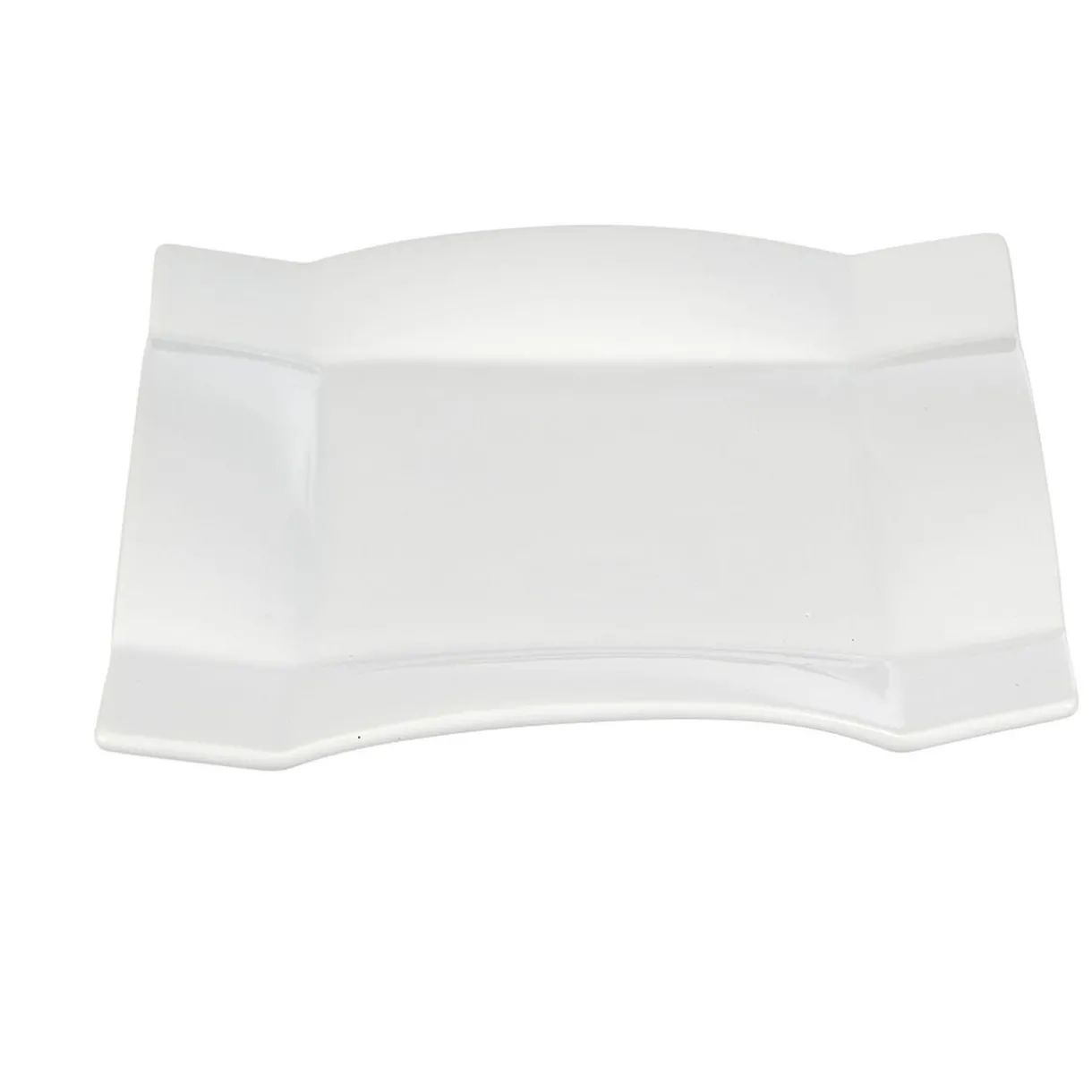 Assiette à dessert carrée avec rebords hauts en porcelaine blanche. Idéale pour le dressage d’une table chic et moderne.