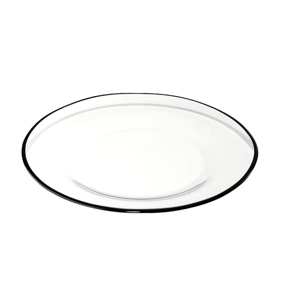 Élégante et contemporaine, l’assiette à dessert en verre transparent bord noir est un choix parfait pour votre table.