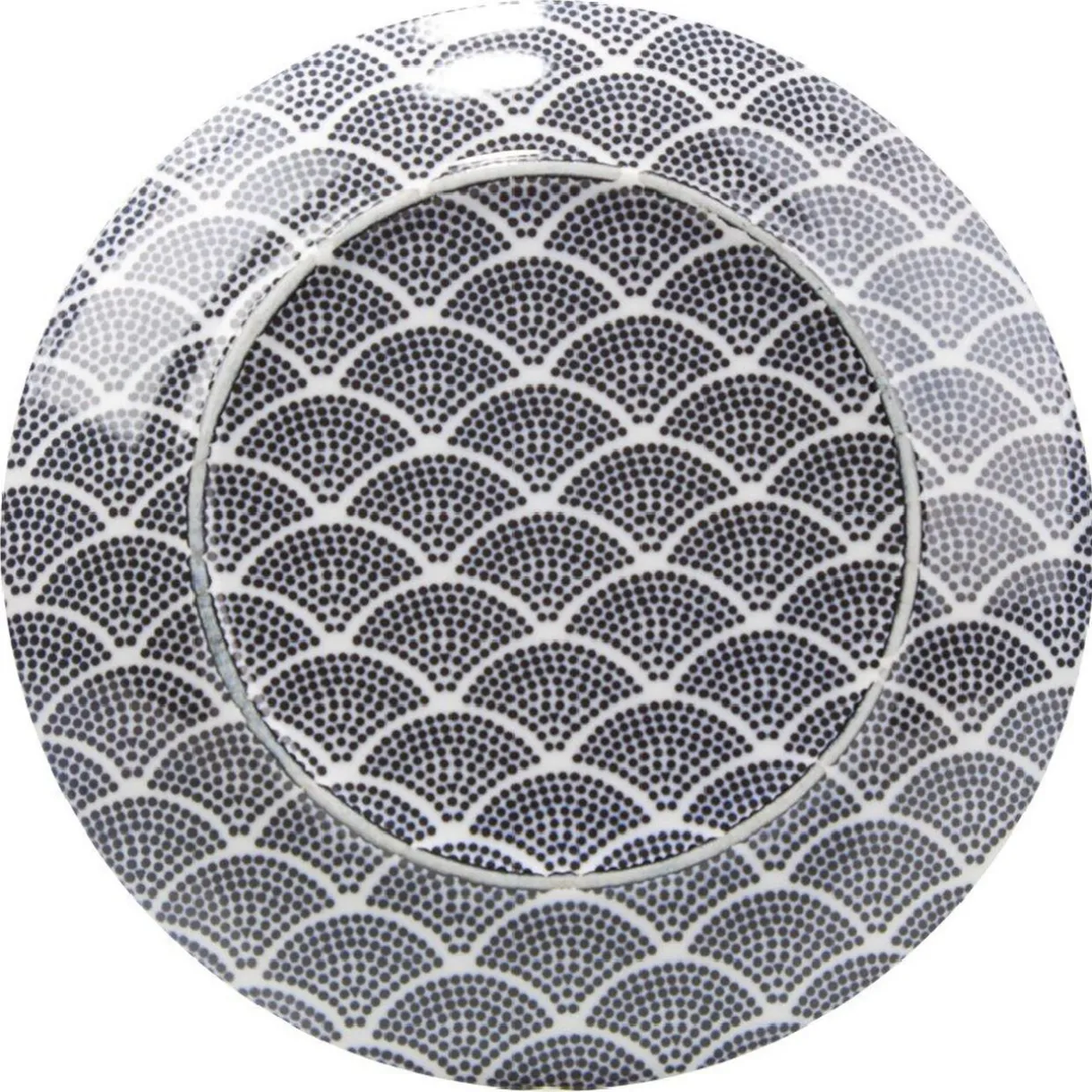Assiette à dessert avec extérieur blanc motifs vagues japonaises et intérieur bleu uni. Idéale pour une cuisine asiatique réussie jusqu’au dressage !