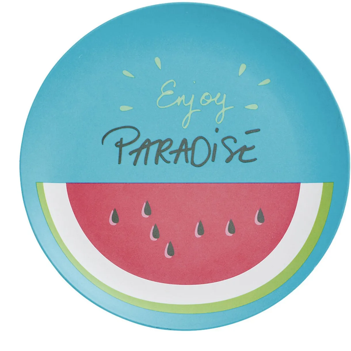 Cette assiette à dessert en plastique ronde sera parfaite pour égayer votre table estivale. Plongez en été grâce à sa décoration pastèque et son incription « Enjoy Paradise ».