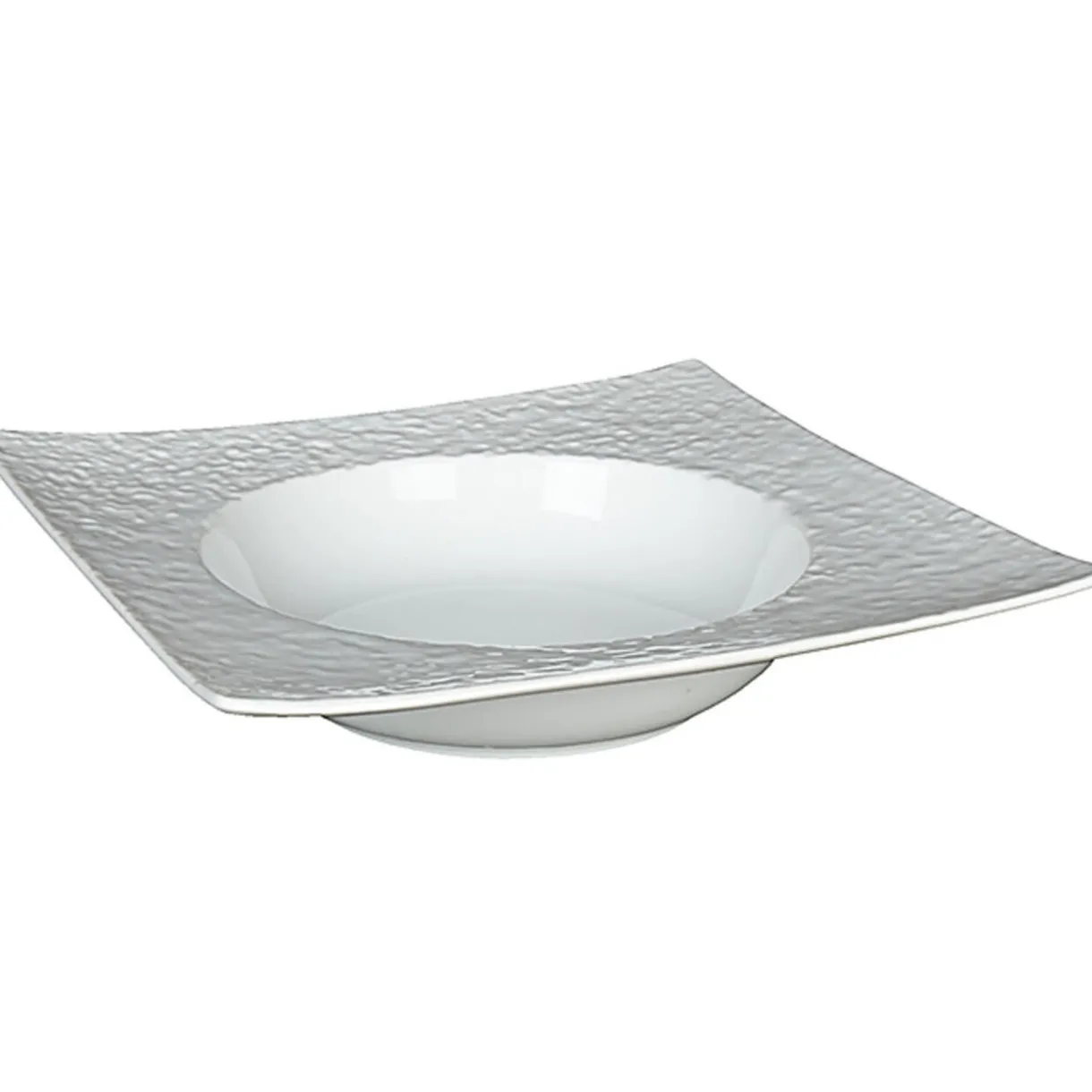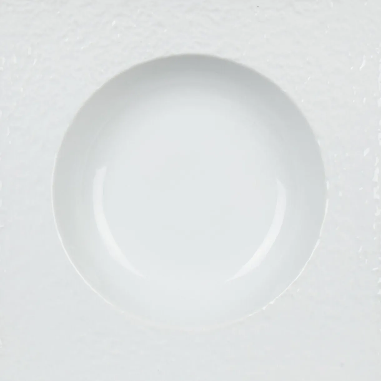 Assiette creuse blanche carrée avec intérieur rond, dim. 21,5×21,5xh.3,5 cm, porcelaine.