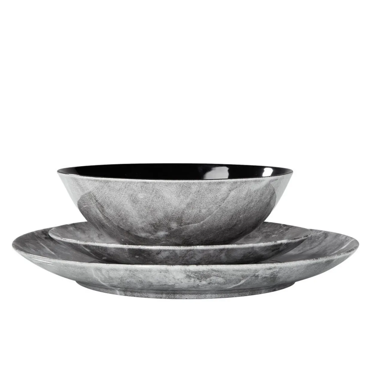 Ayez une table chic et distinguée avec cette assiette creuse à l’extérieur motif marbre gris et intérieur noir uni.