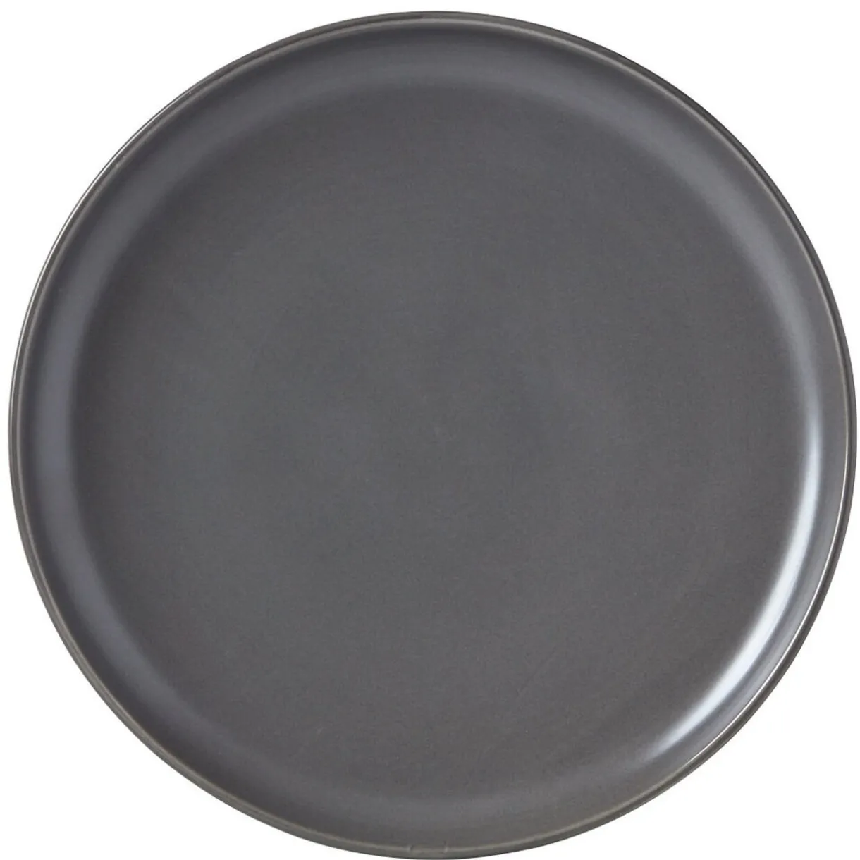 Assiette plate de forme ronde uni gris foncé mat.