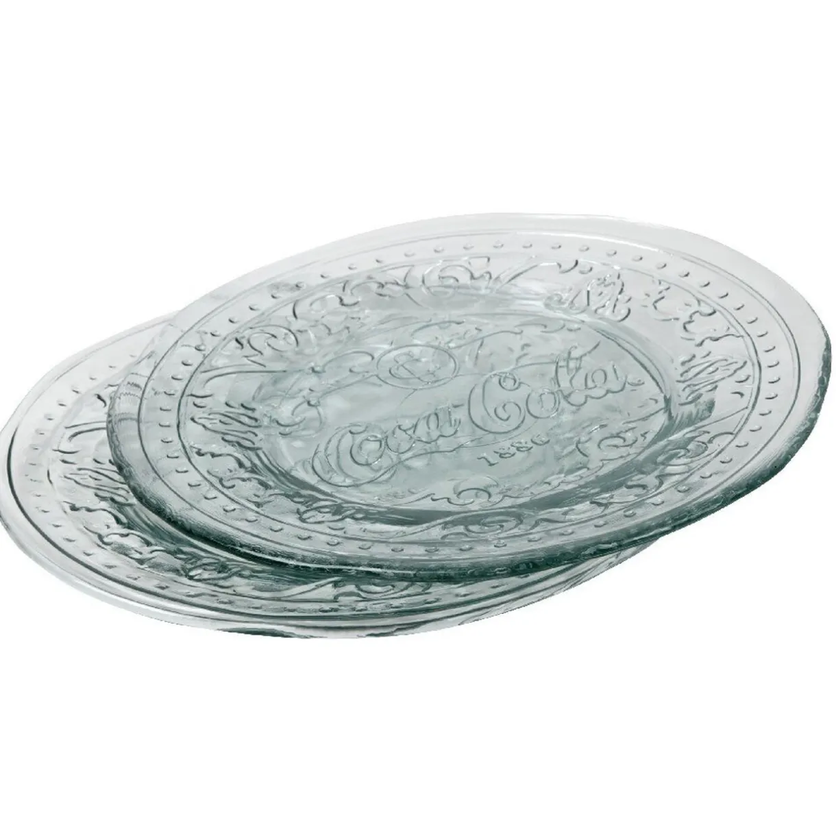 2 assiettes Coca-Cola transparentes, Ø 20 cm, verre recyclé.