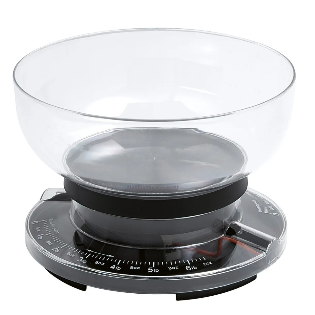 Facile d’utilisation, cette balance de cuisine manuelle avec bol en plastique transparent permet de peser les aliments jusqu’à 3 kilos.