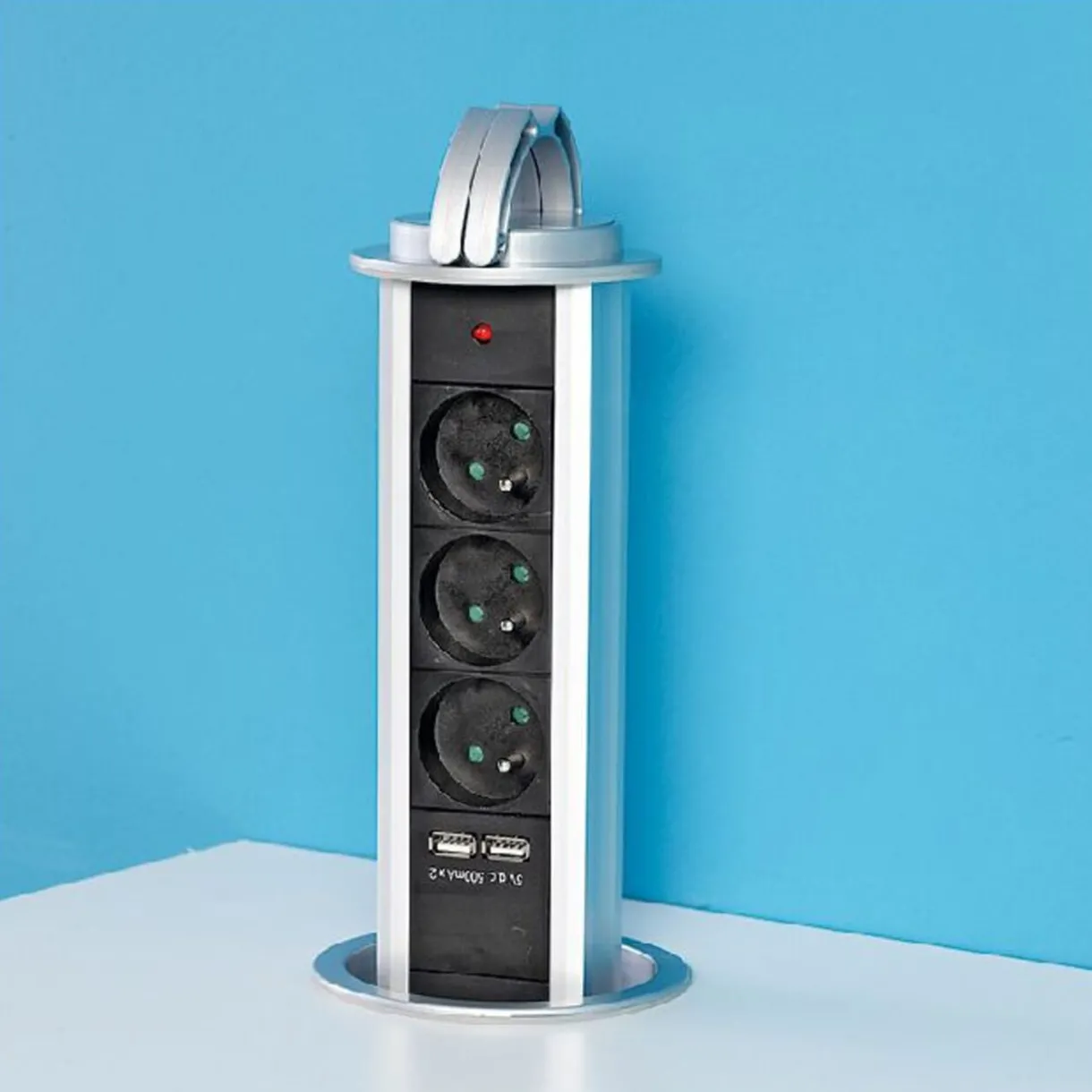 Bloc 5 prises encastrable, avec couvercle décoratif, idéal pour une utilisation au bureau, sécurité enfant, 3 prises cachées et 2 prises USB.