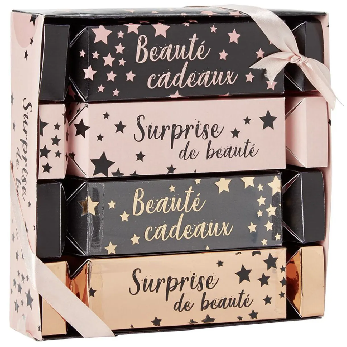 Lot de 4 crackers contenant des cosmétiques surprises.