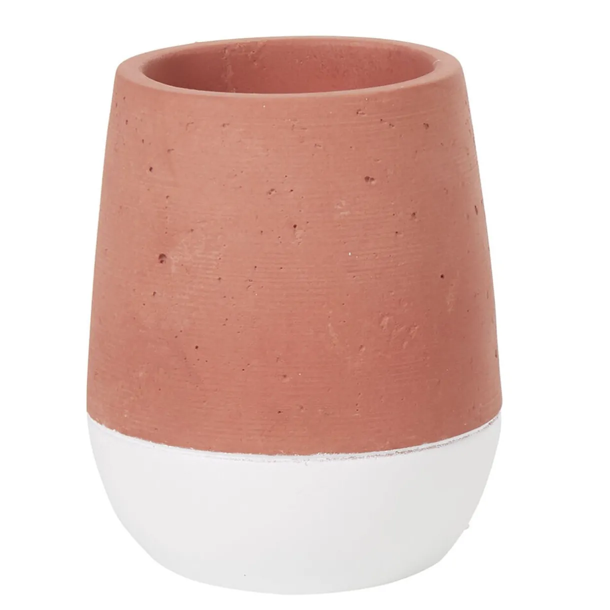 Gobelet pour la salle de bainen résine effet béton de couleur brique et blanc.