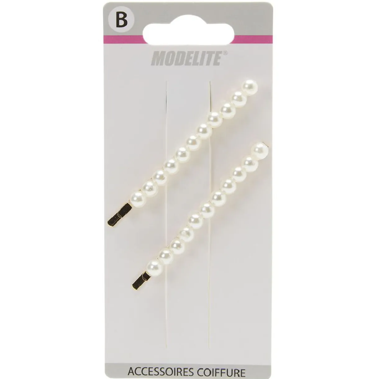 Lot de 2 pinces guiches en métal doré décoré avec des perles d’imitation blanches.