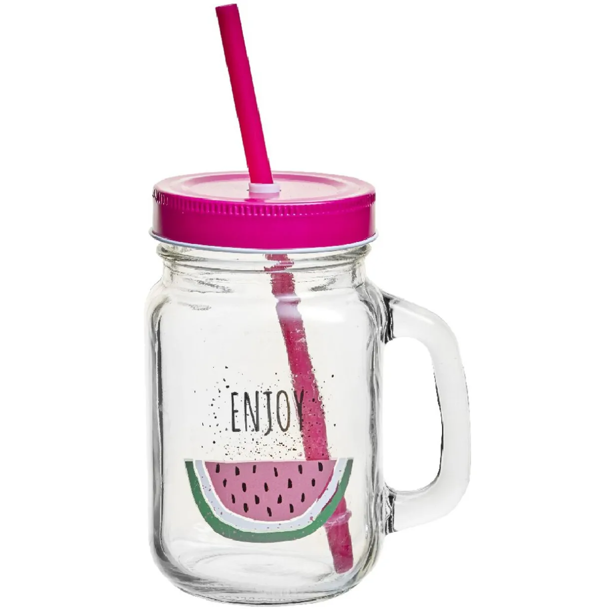 Profitez de la vie et sirotez votre boisson l’esprit tranquille avec cette jolie tasse à anse au design pastèque rose fuchsia. Inscription « enjoy ».