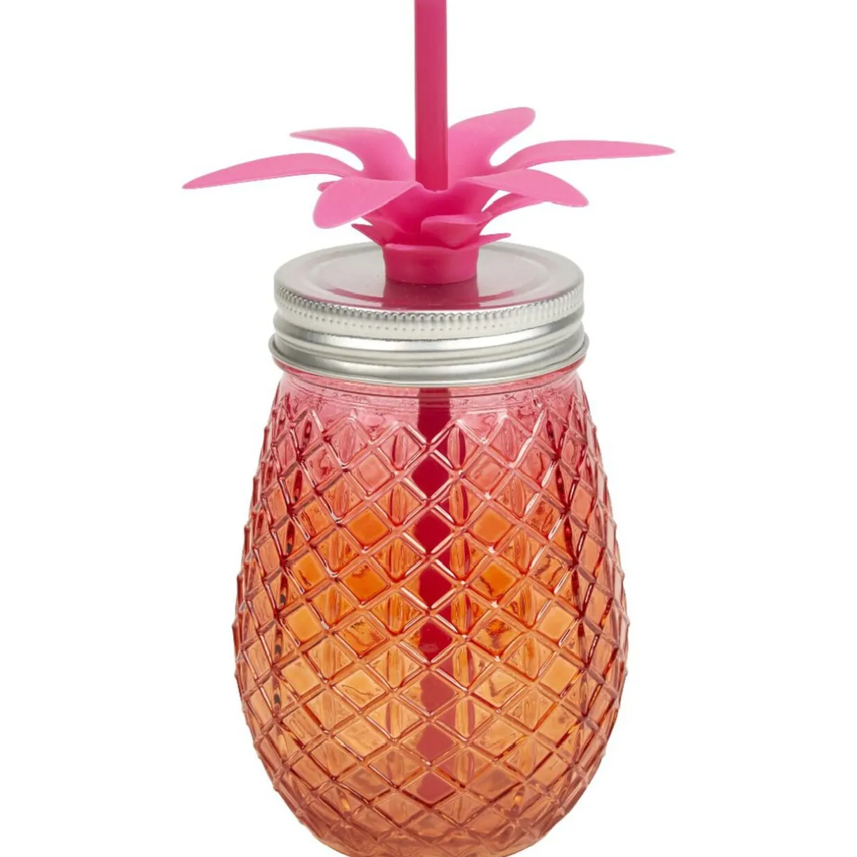 Bocal en verre et sa paille en forme d’ananas.
