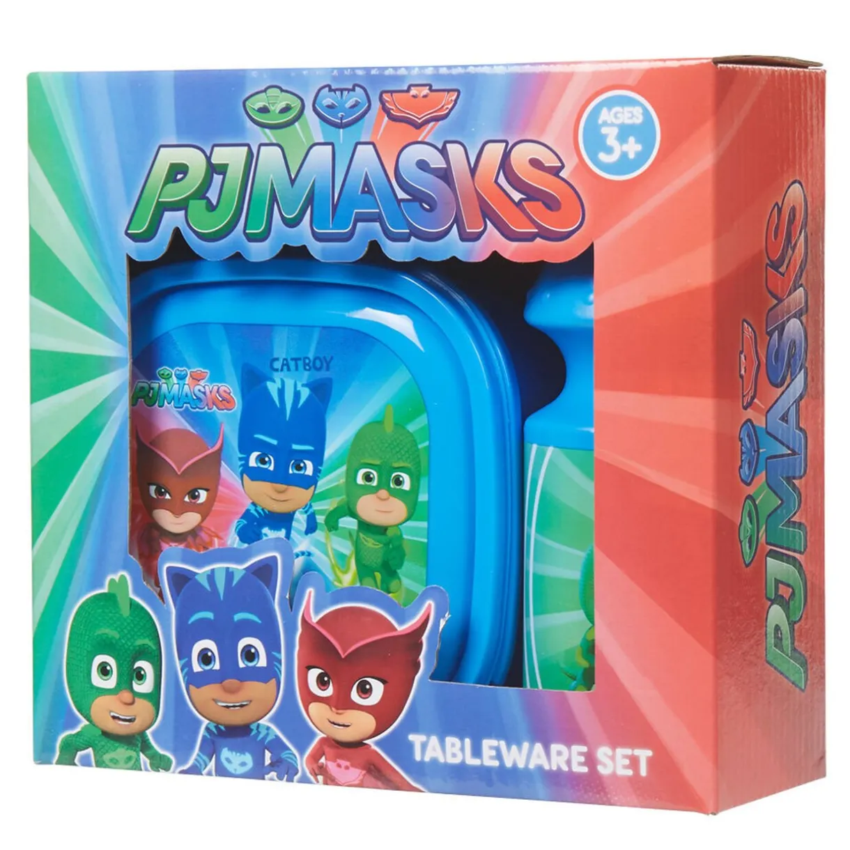 Boîte à sandwich et gourde représentant les personnages du dessin animé Pyjamasque.