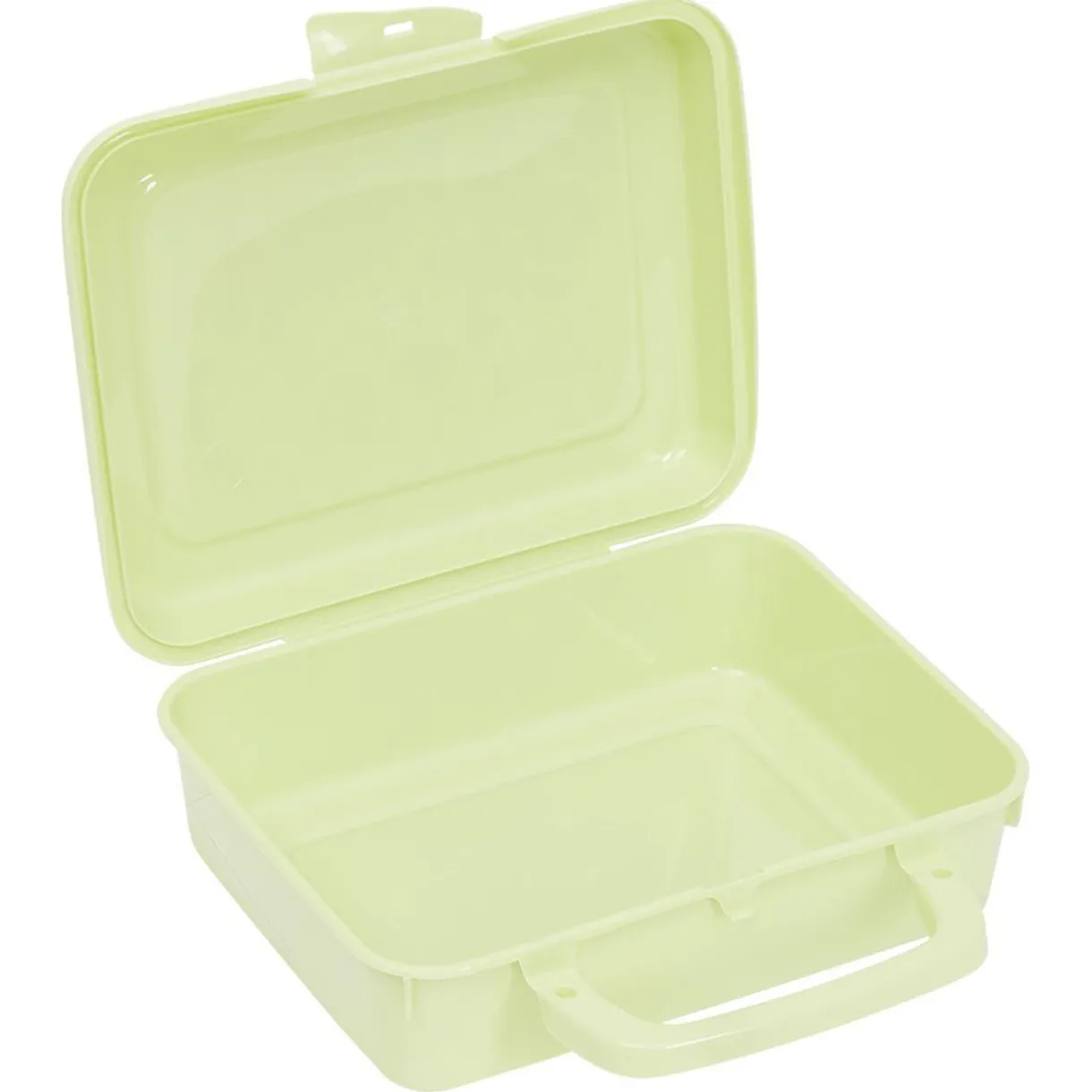 Emportez et transportez facilement votre sandwich partout avec vous grâce à cette boîte en plastique jaune munie d’une anse.
