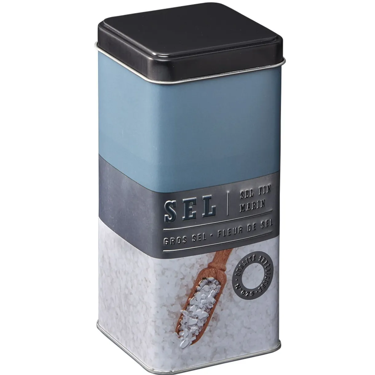 Boîte à sel carrée en métal décorée bleu gris^Gifi Best