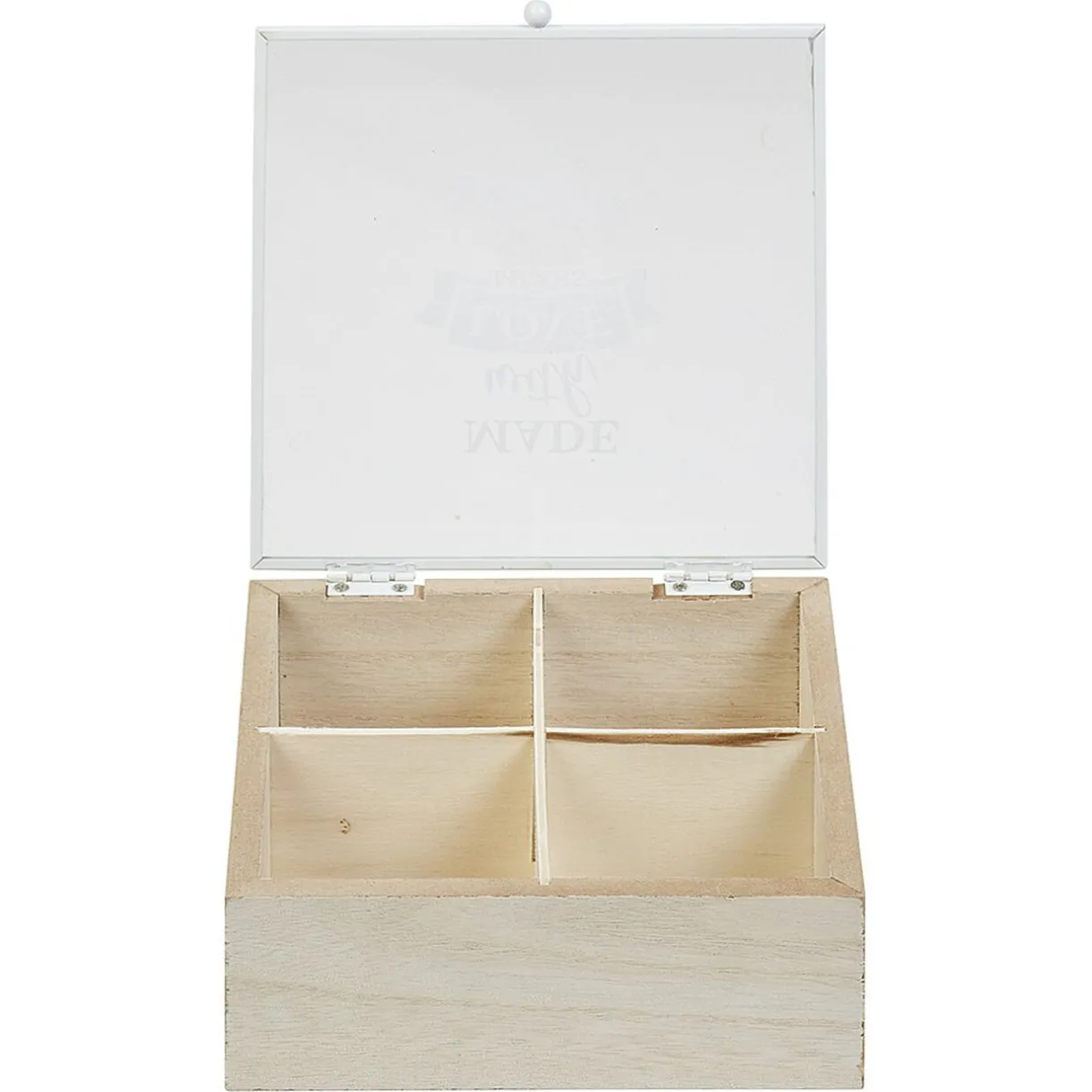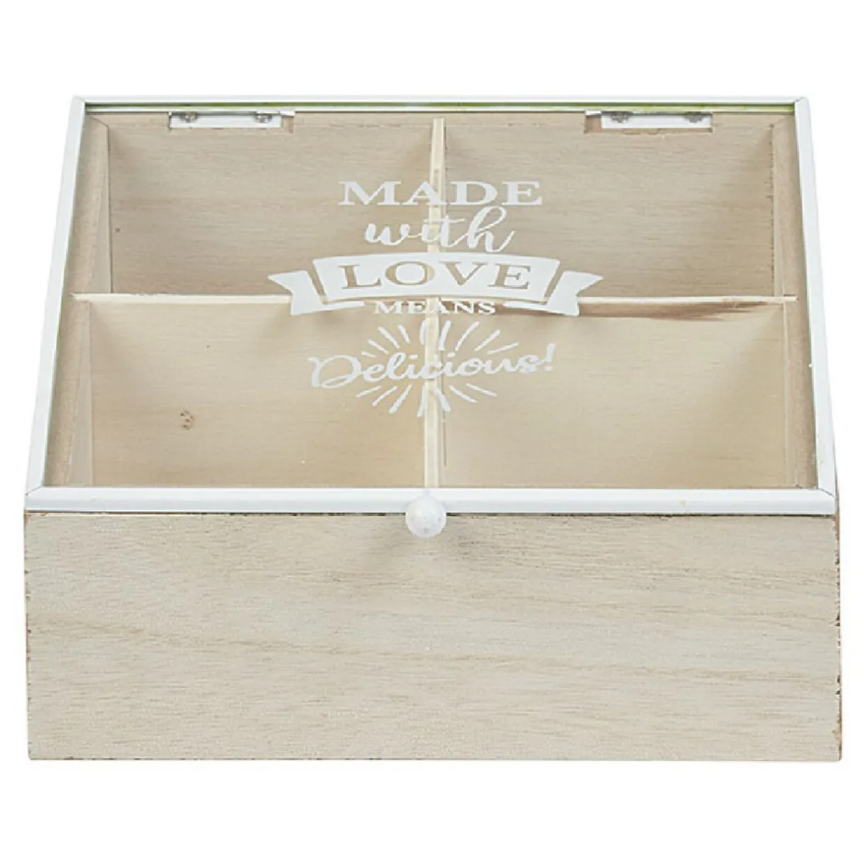 Rangez votre thé dans cette jolie boîte décorée de l’inscription « Made with love means delicious » et dotée de 4 compartiments.