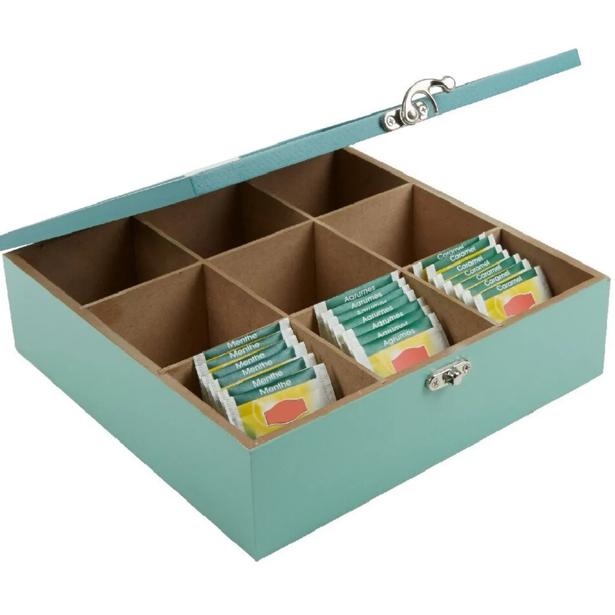Boîte à thé carrée vert d’eau et décor tropical tea time^Gifi Sale