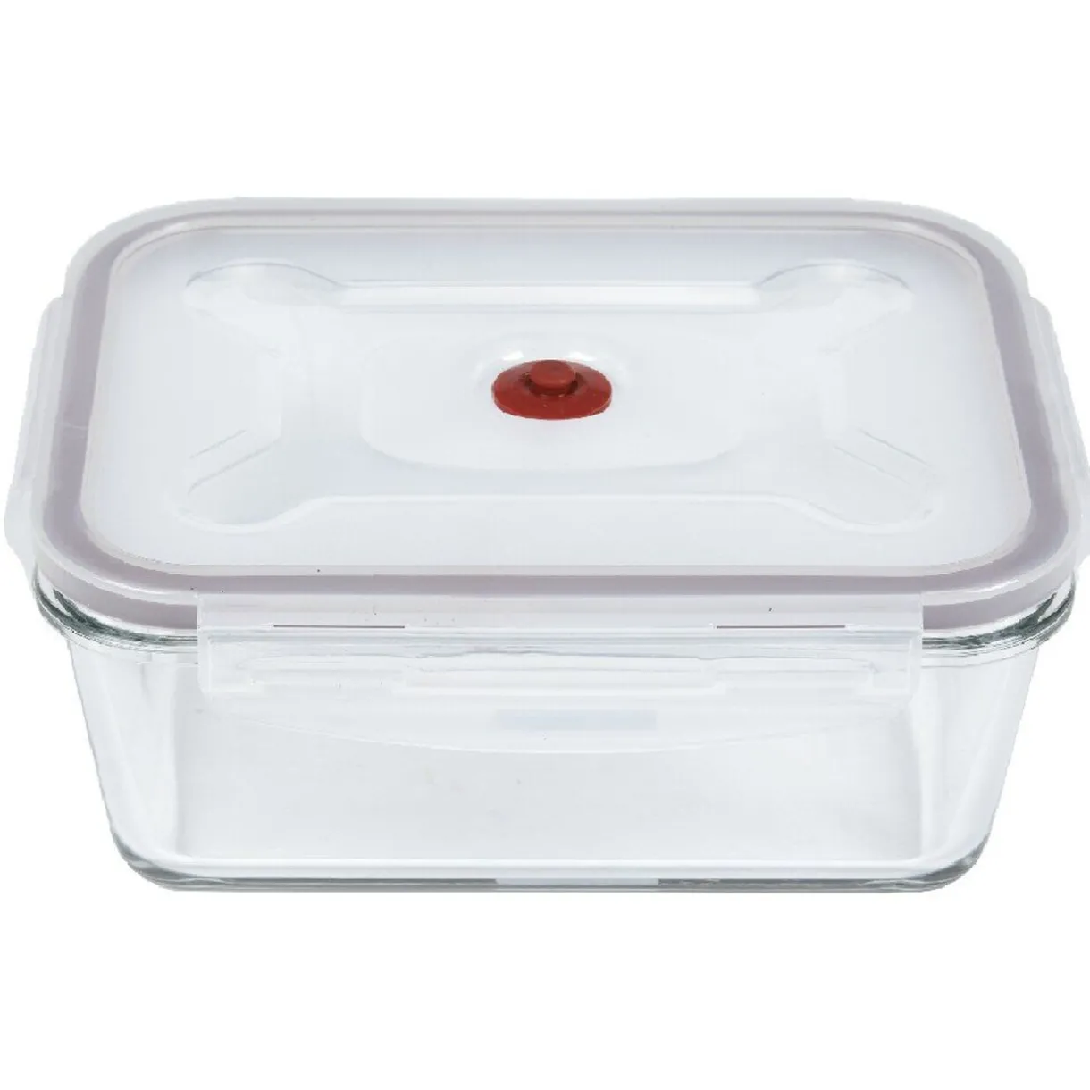 Boîte en verre vide d’air avec couvercle hermétique rouge et blanc, d’une contenance de 1,6L.